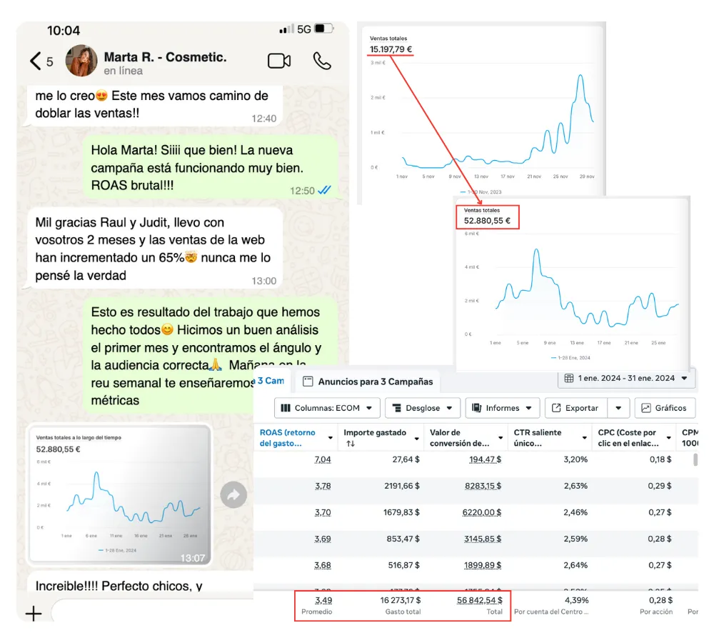El 98% de nuestros clientes empieza a ver ventas en la primera semana. Y si no, tenemos los datos necesarios para ajustar la estrategia y obtener resultados si o si. La escalada fuerte generalmente llega en los primeros 90 días.